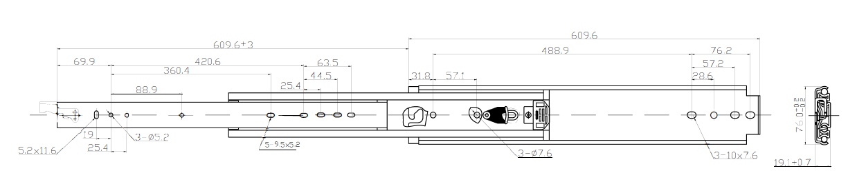 Accueil / Boutique / Quincaillerie et accessoires / Glissières à tiroir / Glissières à tiroir avec système de verrouillage ouvert/fermé (capacité jusqu'à 500 lb) / Glissières à tiroir – Serie jusqu’à 500 lbs – lock-in/lock-out – 24″
